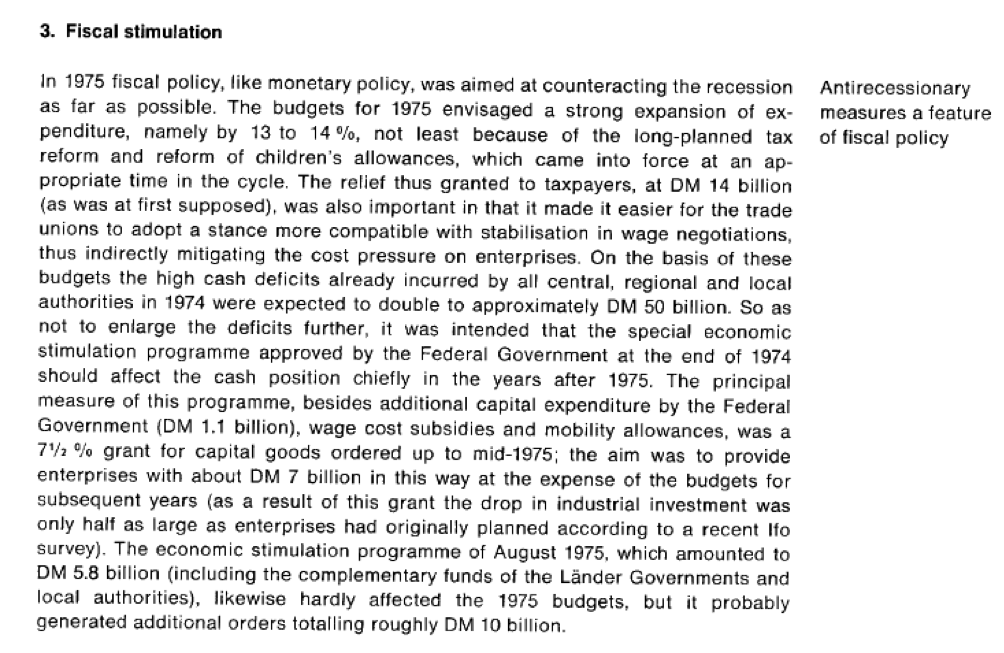 Nel 1975 la Germania se la "giocava in casa", sia nel disegno del mix di politica monetaria e politica di bilancio, sia nel controllo dei canali attraverso cui la stimolazione veniva veicolata al sistema economico (che si trattasse della qualità della sua spesa pubblica piuttosto che del meccanismo di trasmissione del suo sistema bancario).