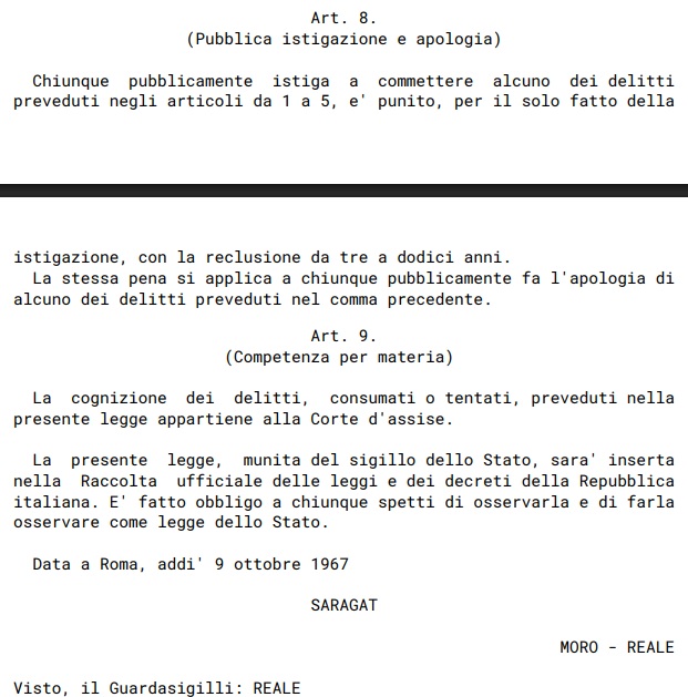Fortemente voluta dal Presidente Moro, la legge italiana in materia di genocidio fu votata dal Parlamento nel 1967 e da allora è rimasta sempre in vigore nella sua formulazione iniziale.